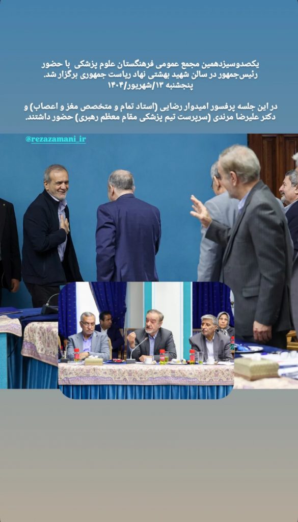 یکصدو سیزدهمین مجمع عمومی فرهنگستان علوم پزشکی با حضور مسعود پزشکیان رئیس جمهور ، دکتر امیدوار رضائی و دکتر مرندی روز پنج شنبه 13 اردیبهشت 1404در سالن شهید بهشتی نهاد ریاست جمهوری برگزار شد.